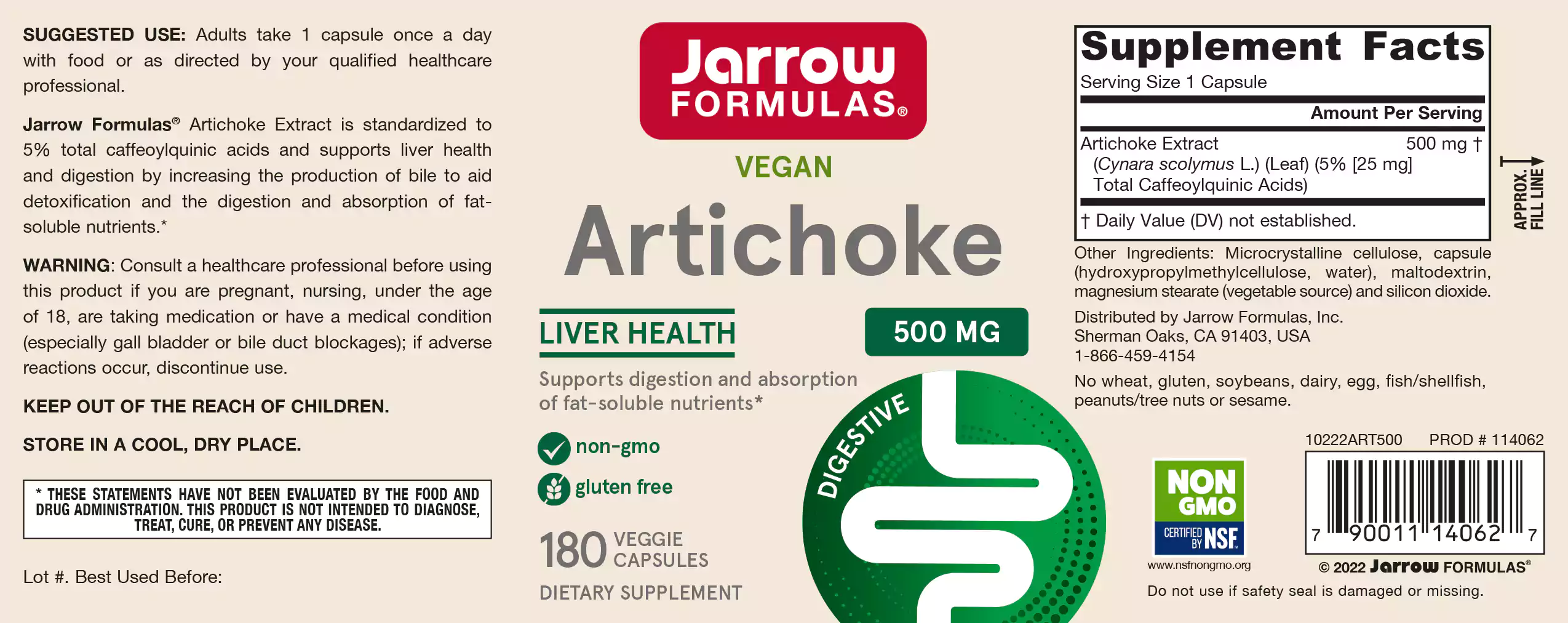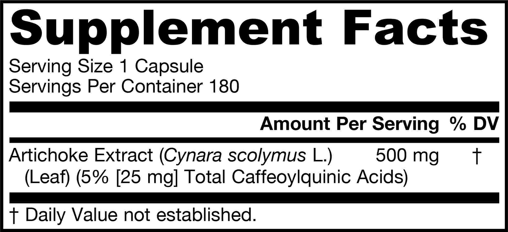 Jarrow Formulas Artichoke 500 Extract is standardized to contain 5% total caffeoylquinic acids.Clinical research has documented the following beneficial properties of artichoke extract: