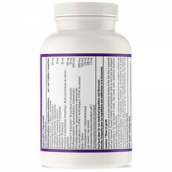 ULTRA Advanced B Complex is formulated with niacin, the most active form of vitamin B3, and the form most effective for heart health and cholesterol. Niacin is not commonly used in B complex supplements because it causes a harmless, but uncomfortable flushing sensation. ULTRA Advanced B Complex contains a safe dose of niacin and the slow release formula minimizes the chances of flushing. Advanced B Complex ULTRA is unique in that it also contains Pyrroloquinoline quinone (PQQ), a B-vitamin-like nutrient that enhances brain health.