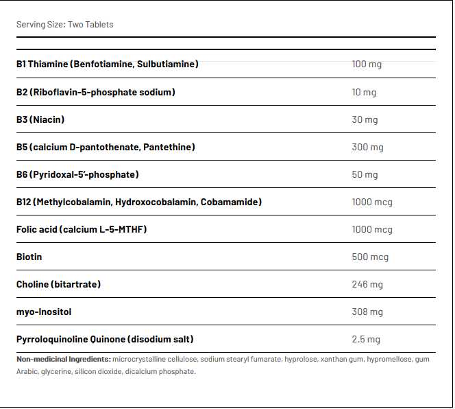 • contains the most effective forms of B vitamins