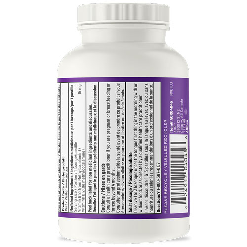 While the RDA (Recommended Dietary Allowance) for vitamin B12 in Canada is just 2.4 micrograms and the upper limit is just 1 milligram, AOR’s Methylcobalamin Ultra provides an ultra-high, clinically effective dosage of the most bioavailable form of vitamin B12 in a convenient and pleasant tasting lozenge form.