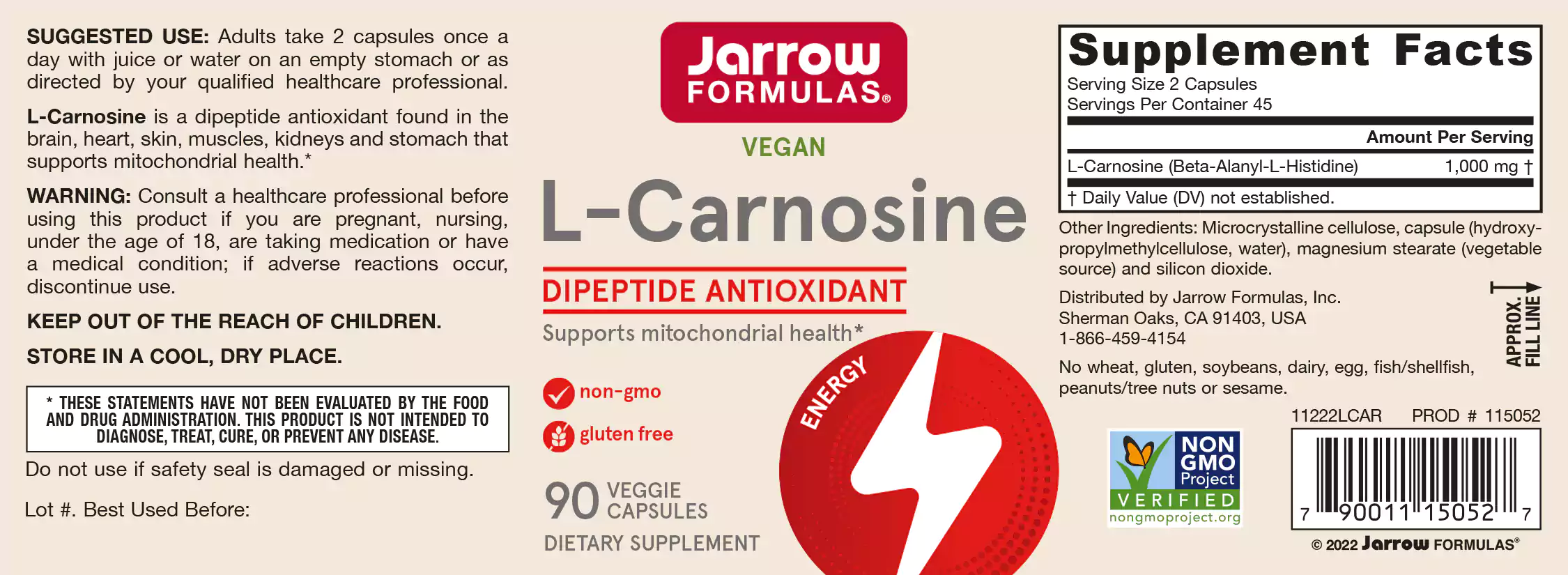 Jarrow Formulas L-Carnosine provides the highest quality L-carnosine available