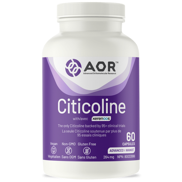 AOR’s Citicoline provides a source of choline along with added choline for enhanced acetylcholine production, while the cytidine end is converted into cytidine diphosphate which enhances the natural production of all the body’s phospholipids in a balanced manner. Citicoline is ideal for those looking to support cognitive performance, memory and mood, or to support the health and function of brain cells during aging or after a brain injury.