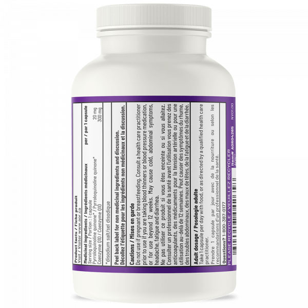 AOR Cogni-Q contains a combination of 20mg PQQ (pyrroloquinoline quinone) and 300mg co-enzyme Q10. Pyrroloquinoline Quinone (PQQ) is a recently discovered B-vitamin-like nutrient that is not practically obtained from food.