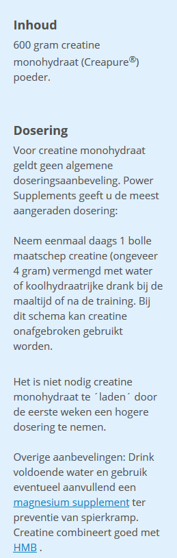 Mix 1 scoop (4g) into half a litre water or fruit juice (glucose, as found in certain fruit juices, enhances uptake and utilization of creatine monohydrate); for higher intakes, consult your qualified health care consultant.