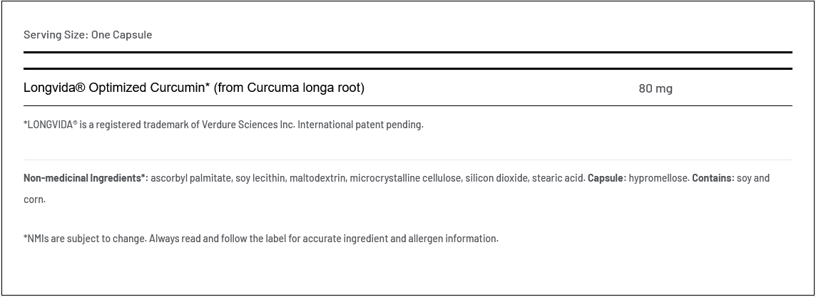 Longvida® Optimized Curcumin* (from Curcuma longa root) 80mg