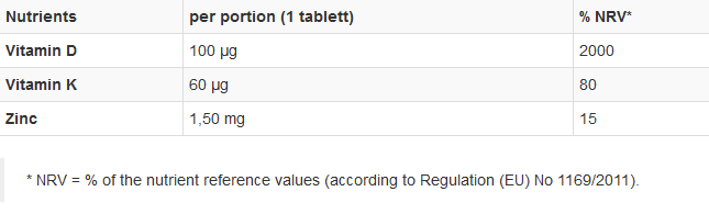 - high-quality tabs with vitamin D3, vitamin K2 and zinc