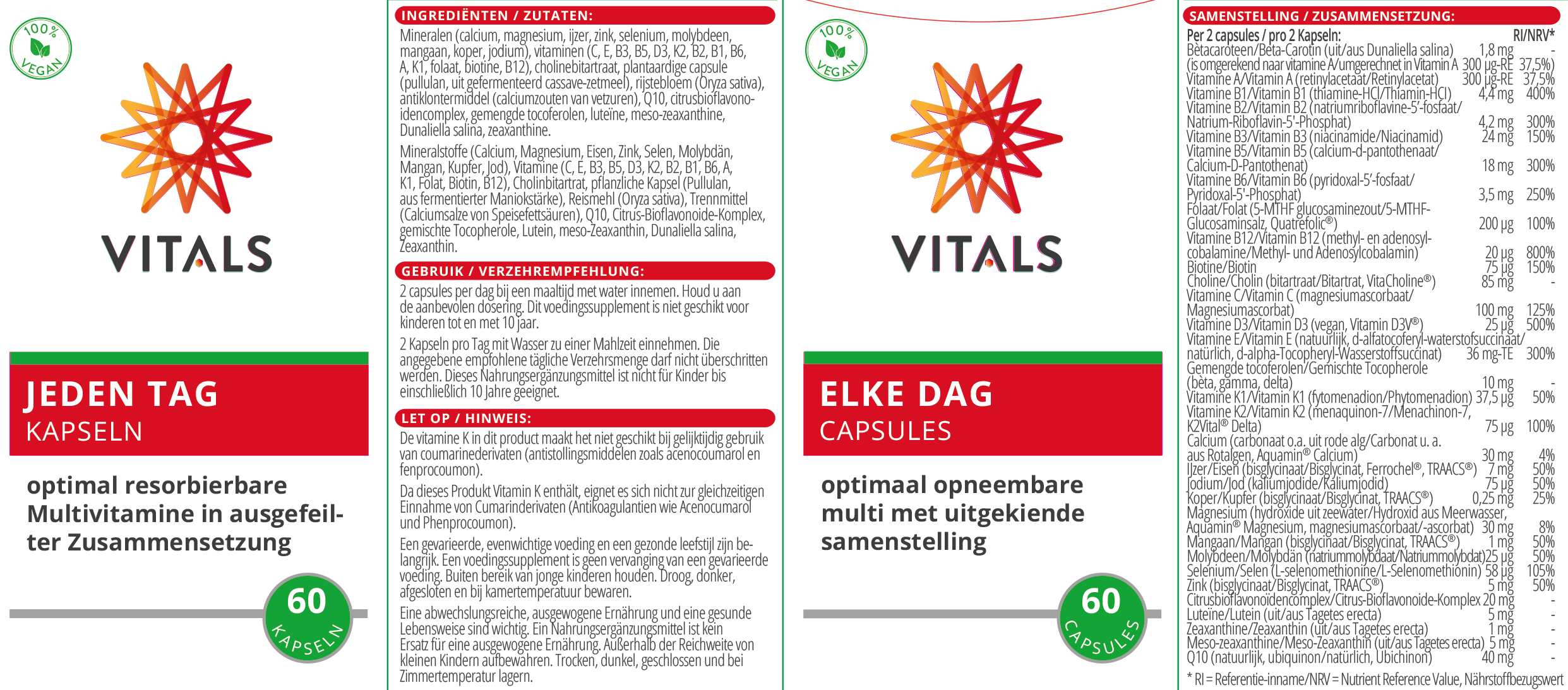 Vitals Elke Dag Capsules is a carefully designed everyday multivitamin with optimal absorption