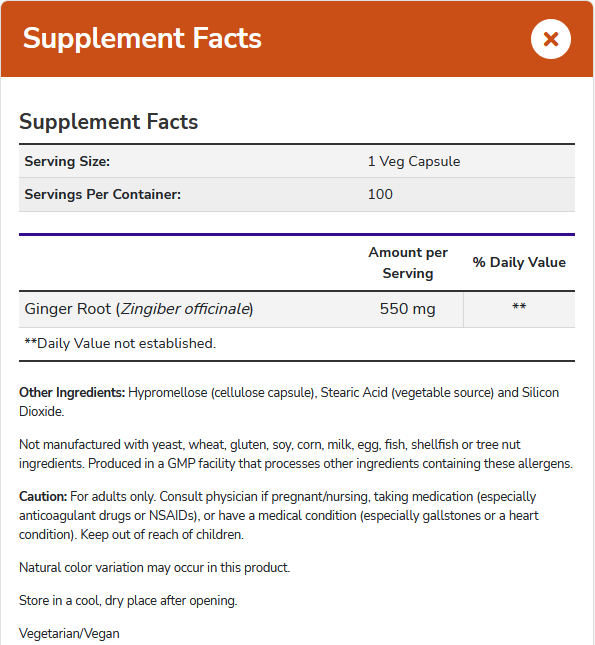 Ginger root (Zingiber officinale) has been used since antiquity to support digestive function and ginger's historical applications have been validated by modern research. Scientific studies have demonstrated that ginger may help to maintain healthy GI flora, aid the digestion of dietary fats, and calm and soothe the digestive tract. In addition, ginger possesses a number of constituents that may support healthy cardiovascular function and promote a balanced immune system response.
