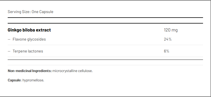 active ingredient (ginkgo biloba extract), fillers (microcrystalline cellulose), capsule (hydroxypropylmethylcellulose)