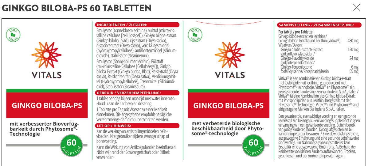 - contains Virtiva®, a combination of Ginkgo biloba-extract and phosphatidylserine