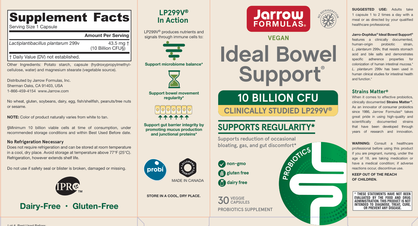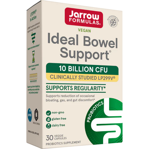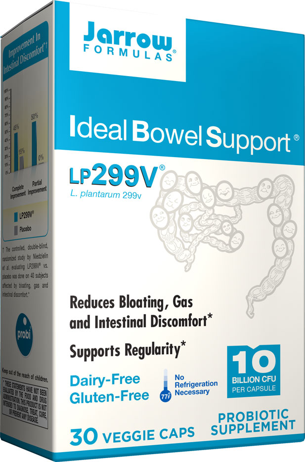 Jarrow Formulas Ideal Bowel Support 299v contains a clinically documented human origin probiotic strain, Lactobacillus plantarum 299v. with a superior adherence and colonization ability in gut mucosa. Lactobacillus plantarum 299v promotes gastrointestinal health and protects from occasional bloating and bowel discomfort.