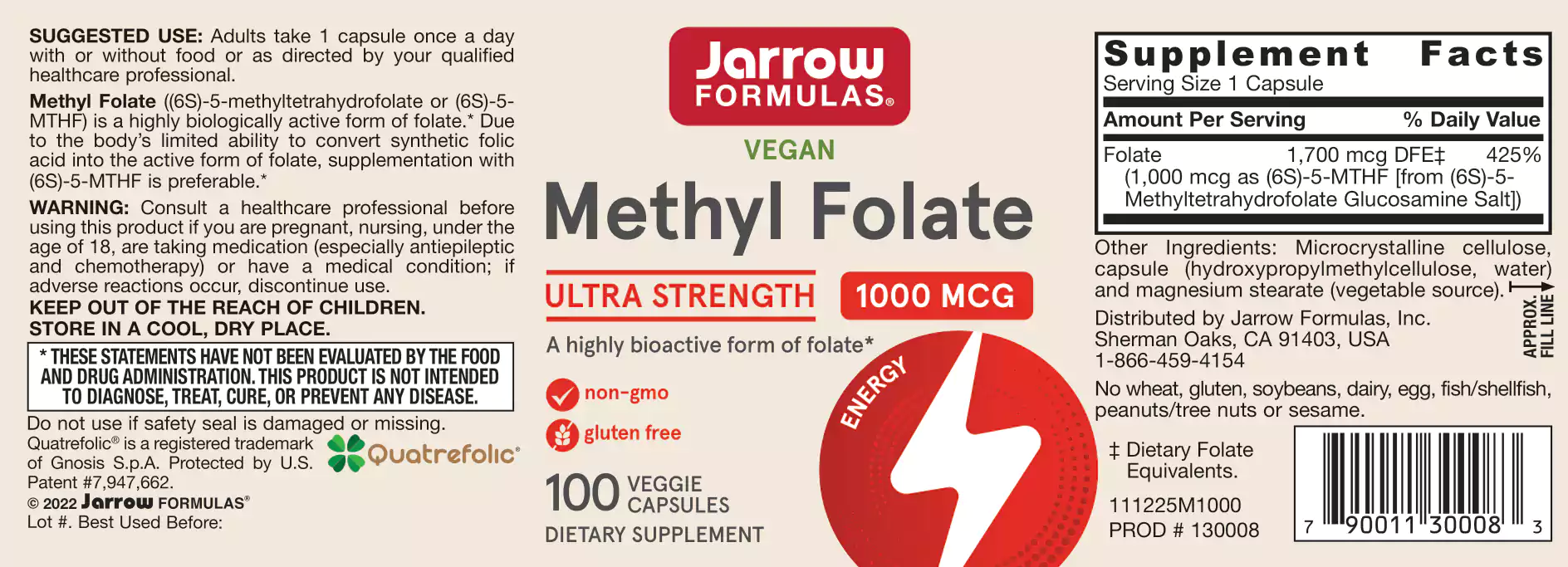 Jarrow Formulas MethylFolate met 5-MTHF is een bijzondere vorm van foliumzuur die zeer goed biologisch beschikbaar is.