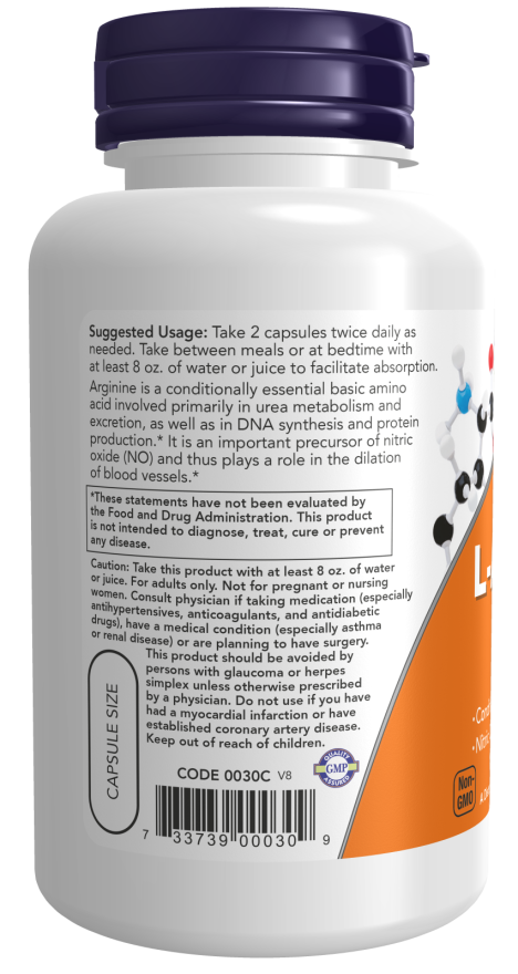 NOW L-Arginine is een aminozuur dat een belangrijke rol speelt in diverse metabolische processen, waaronder de eiwitsynthese, de productie van creatinefosfaat noodzakelijk voor ATP-productie evenals de synthese van stikstofoxide (NO). NO speelt een belangrijke rol bij de doorbloeding.