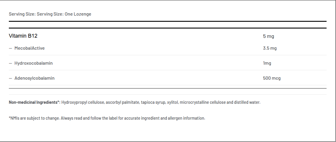 - combineert drie verschillende vormen van vitamine B12: hydroxycobalamine, adenosylcobalamine en methylcobalamine