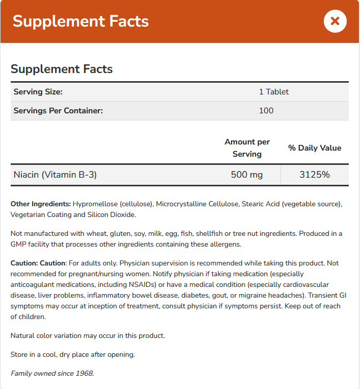 niacine (nicotinezuur, vitamine B3) 500 mg (3125 % ADH)