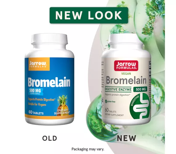 Jarrow Formulas Bromelain bevat bromelaïne, het eiwitsplitsend enzym dat van nature gevonden wordt in alle delen van de ananas. De bekendste toepassing van bromelaïne is als spijsverteringsenzym voor eiwitten. Minder bekend is dat het ook kan worden gebruikt om spieren soepel te maken, gewrichten te smeren en zwellingen om de nabij pezen en gewrichten tegen te gaan en bloed dun te houden.