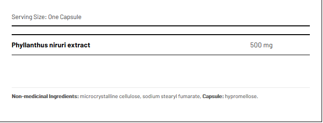 - komt overeen met 5000 mg rauwe Phyllanthus niruni