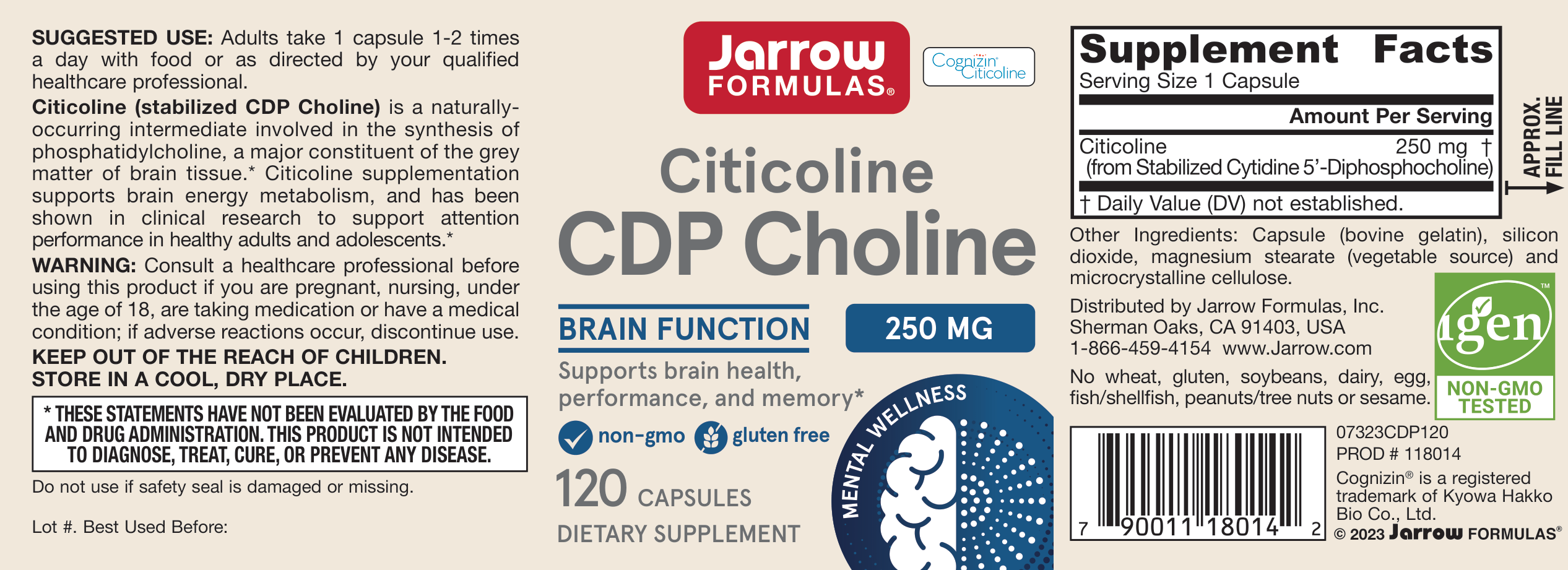Jarrow Formulas CDP Choline met citicoline, (ofwel cytidine 5'difosfocholine), de bioactieve vorm van lecithine voor de hersenen welke direct effect heeft op zowel het korte als het lange termijn geheugen. CDP Choline of Citicoline is dermate effectief, dat het zelfs op de lijst van voor topsporters verboden prestatieverhogende middelen is geplaatst.