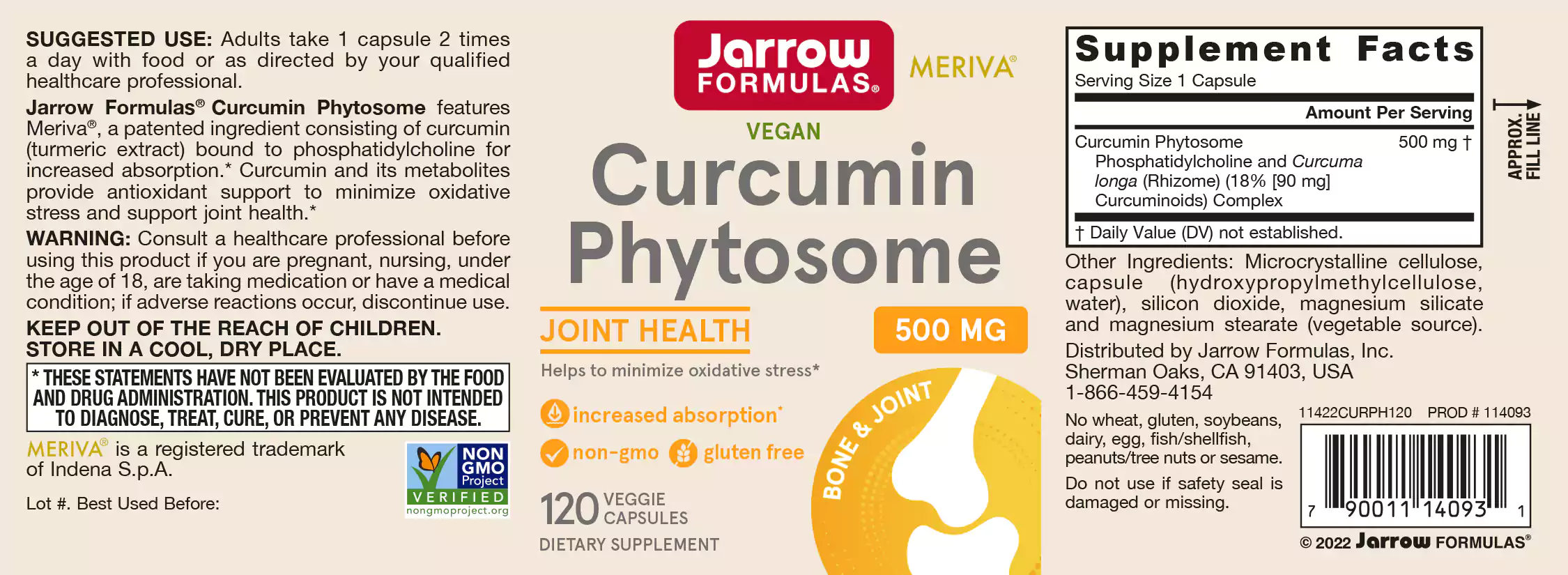 Jarrow Formulas' Curcumin Phytosome ondersteunt een gezond ontstekingsremmend effect. reactie binnen het normale bereik en beschermt DNA tegen schade door vrije radicalen en reactieve zuurstofsoorten.