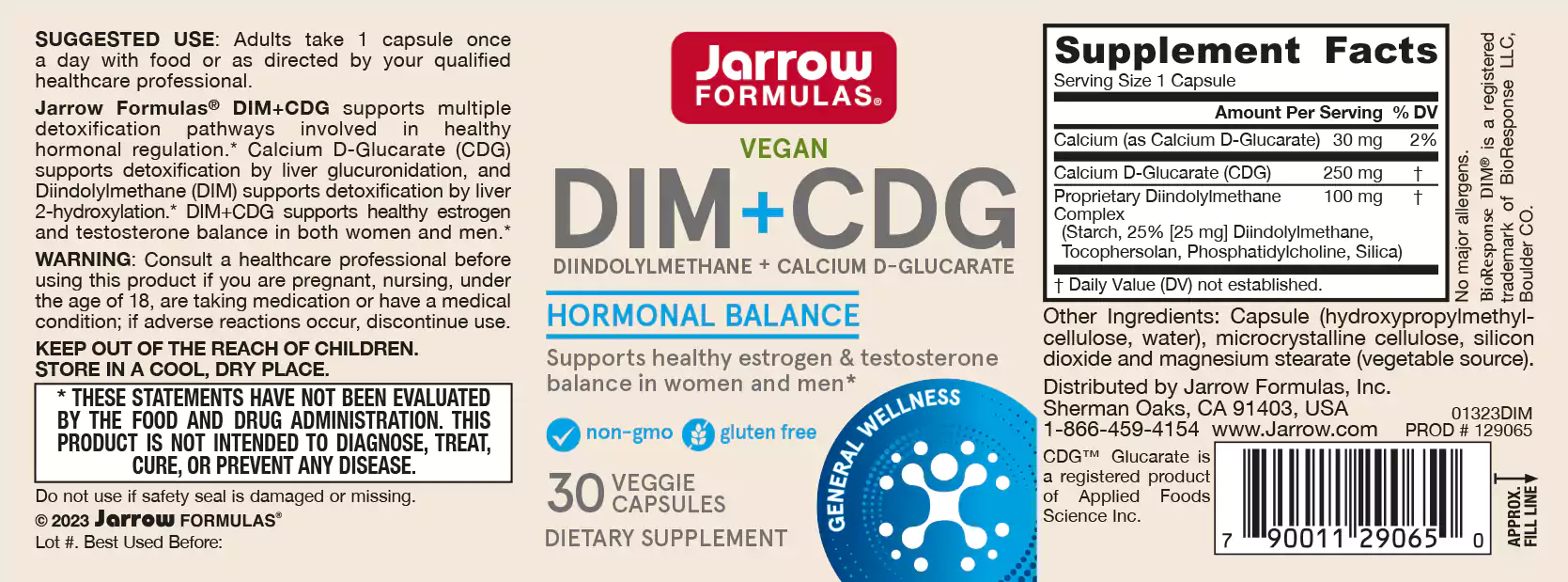 Hoewel veel producten alleen DIM of CDG bevatten, biedt Jarrow Formulas' DIM + CDG een krachtige mix van deze twee belangrijke voedingsstoffen. De formule bevat het handelsmerk BioResponse DIM ® , de enige micro-ingekapselde, biologisch beschikbare DIM-formule, plus gepatenteerd CDG, dat zich richt op belangrijke enzymen voor de verwijdering van cellulair afval. Samen werken DIM en CDG om verbeterde ontgifting en algehele cellulaire gezondheid te bevorderen.