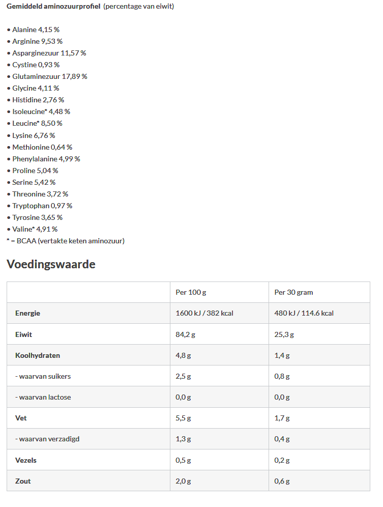 • 1000 gram - goed voor ruim 30 eiwitshakes - met een hoog percentage eiwit (84%) en vrij van lactose.