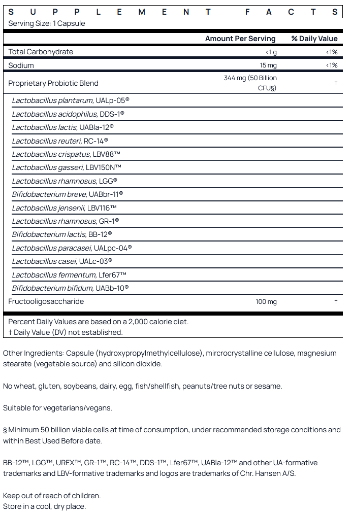 ®: Fem-Dophilus® Ultra is samengesteld met een precieze combinatie van 9 klinisch onderzochte probiotische stammen, waaronder de meest klinisch onderzochte stam, voor uitgebreide probiotische ondersteuning.