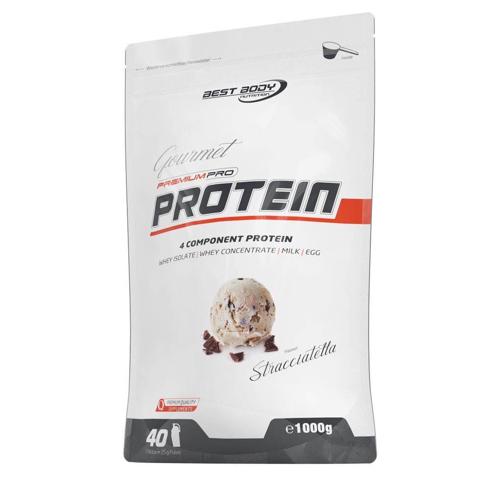 Gourmet Premium Pro Protein is een hoogwaardig eiwitpoeder met meerdere componenten in een kwaliteit zoals je die bij de sportschool verwacht met een gemiddeld eiwitgehalte van 80 % . Dankzij de hoogwaardige ingrediënten is de door u bereide eiwitshake heerlijk romig van smaak en structuur, maar ook beschikbaar in veel heerlijke smaken .