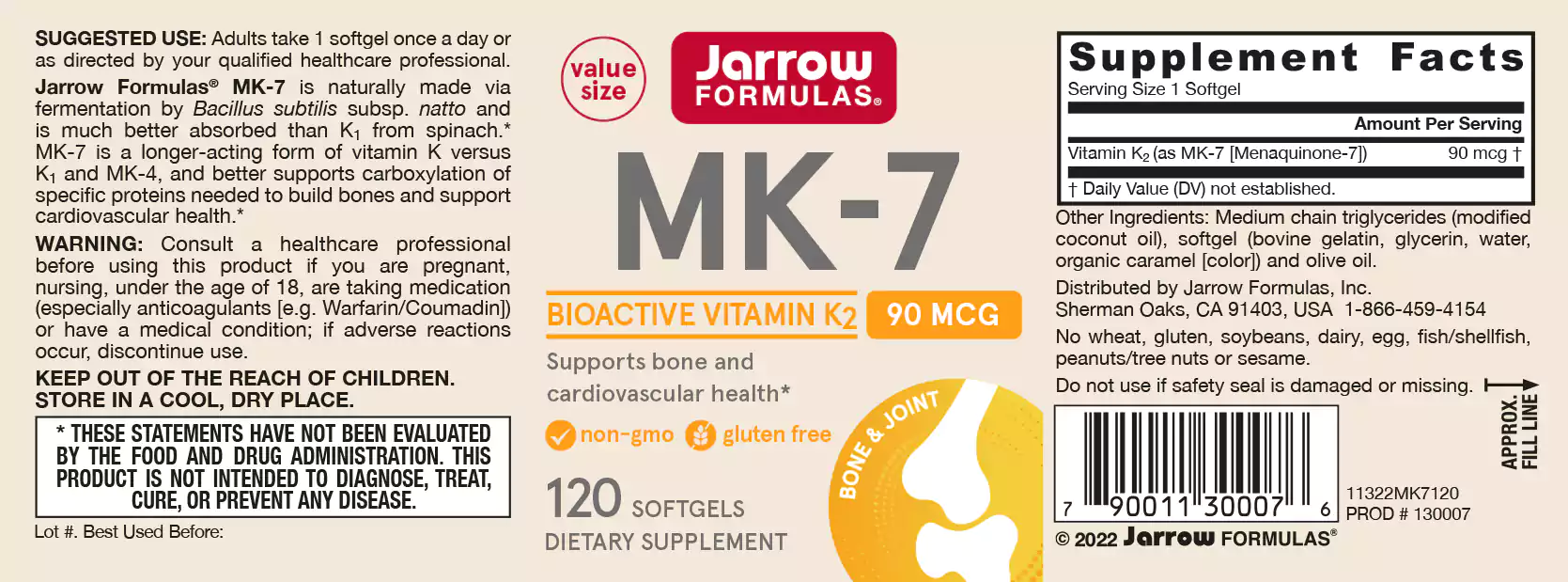 Jarrow Formulas MK7 Natto K2 90mcg - Menaquinone bevat vitamine K2 en draagt bij aan de heling van bindweefsel, houdt bloedvaten elastisch, helpt bij de afbraak van bloedstolsels en sterkt het hart en bloedvaten.