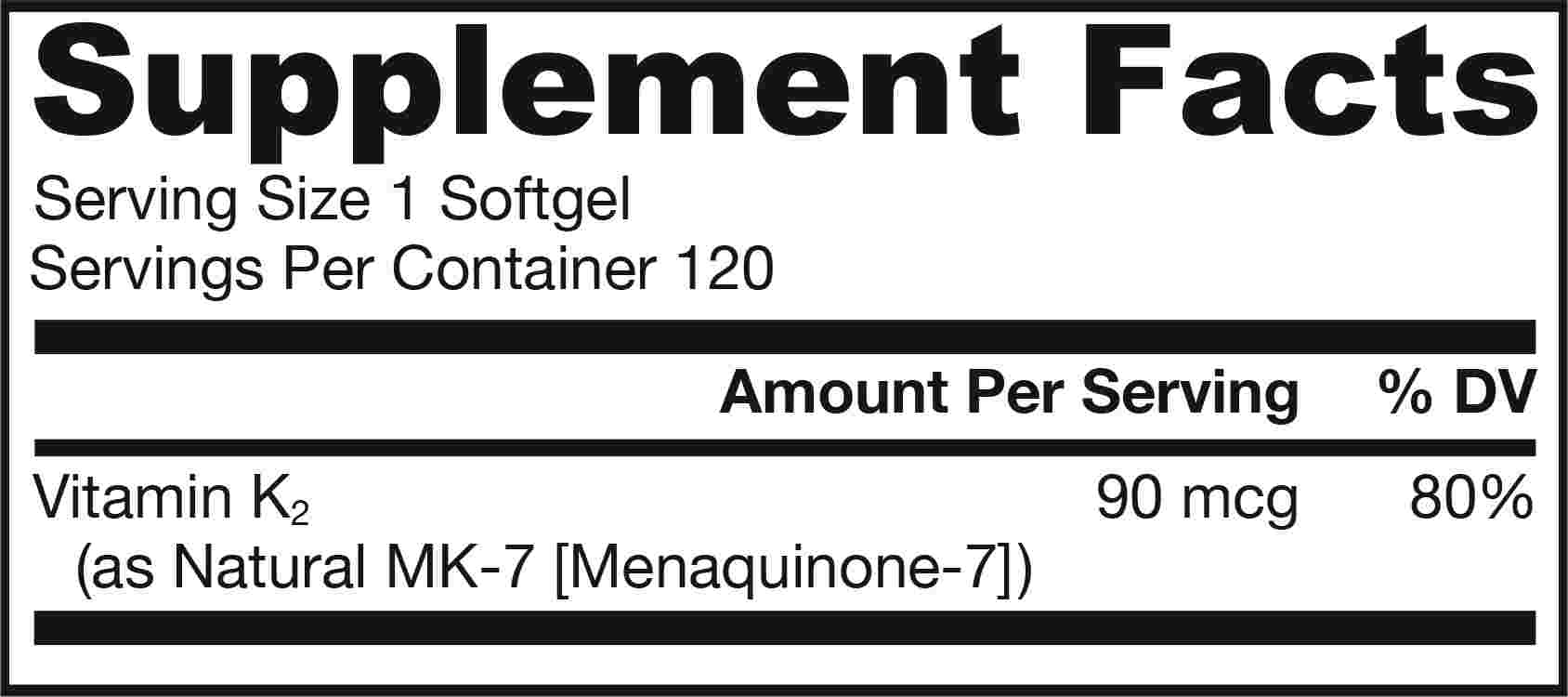 vitamine K2 (menaquinone) 90 mcg (80% ADH)