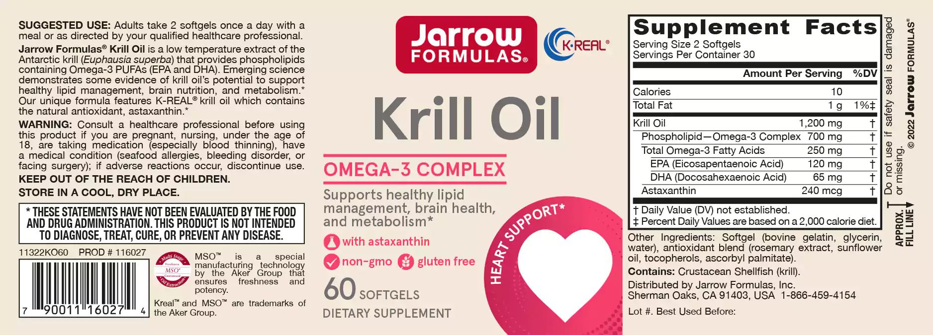 Krill Oil 60 softgels  - 100% zuivere krillolie + astaxanthine | Jarrow Formulas