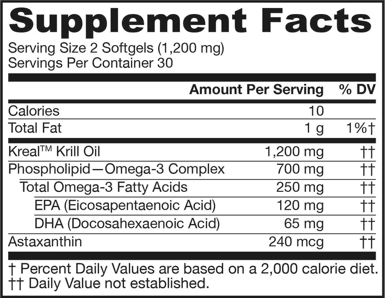 Wereldwijd is de algemene consensus dat je drie keer zoveel omega 3-vetzuren (EPA+DHA) nodig hebt die aanwezig zijn in twee krilloliecapsules, maar de biologische beschikbaarheid van EPA en DHA die aanwezig zijn in krill maakt dat slechts één capsule voldoende is voor anders ten minste 500 mg EPA en DHA uit gewone visolie voor een gezond hart. De EPA en DHA in traditionele visolie zijn gebonden aan triglyceriden en deze binding met triglyceriden compenseert veel van de directe voordelen van EPA en DHA in het geval van hartgezondheid, hersenfunctie of premenstrueel comfort.