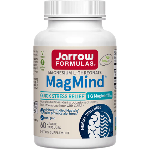 Jarrow Formulas MagMind met magnesiumthreonaat of Magtein is de enige vorm van magnesium die vrij gemakkelijk door de bloed-hersenbarrière heen kan komen en mede daardoor een aantoonbaar gunstige invloed heeft op het leervermogen, geheugen en hersengezondheid.