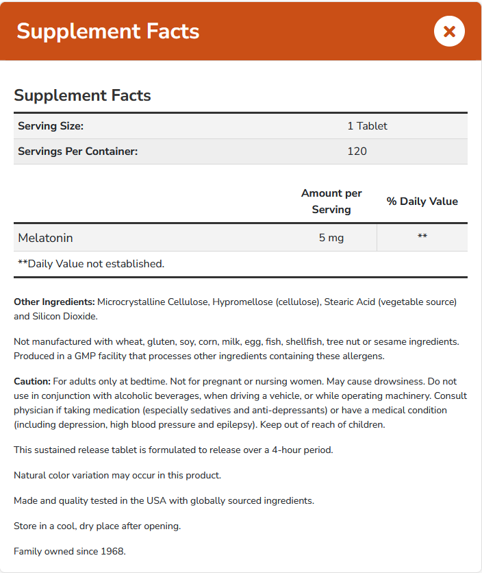 - 5 mg melatonine per tablet