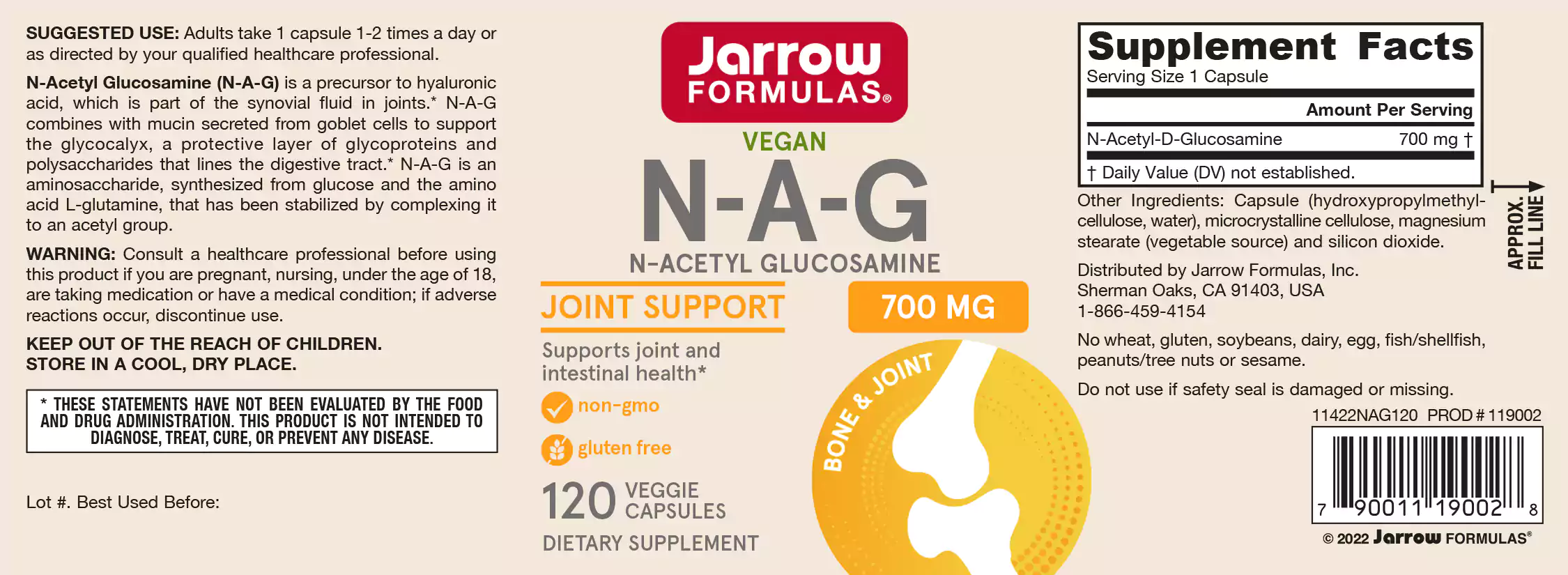 Jarrow Formulas N-Acetyl Glucosamine is een aminosuiker, die is samengesteld uit glucose en het aminozuur L-glutamine, dat gestabiliseerd is door het aan een acetyl-groep te verbinden.