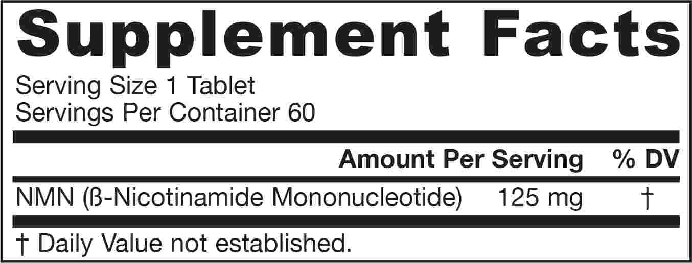 werkzame stof (nicotinamide mononucleotide), vulstof (calciumfosfaat, cellulose, plantaardig stearinezuur en magnesiumstearaat), antiklontermiddel (siliciumdioxide) en tablet (voedselveilige coating)