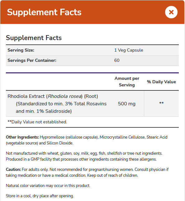 NOW® Rhodiola is gestandaardiseerd op 3% totale rosavins en 1% salidroside.