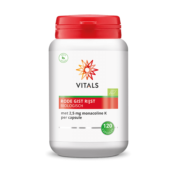 Rode gist rijst (ook wel red yeast rice) is een belangrijk onderdeel van de Aziatische keuken. Het wordt er al eeuwenlang in grote hoeveelheden geconsumeerd. Rode gist rijst ontstaat door fermentatie van rijst met de gist Monascus purpureus waardoor de rijst een donkerrode kleur krijgt. Tijdens het fermentatieproces ontstaan de kenmerkende inhoudsstoffen. De belangrijkste daarvan is monacoline K. Als basis voor Vitals Rode Gist Rijst met 2,5 mg monacoline K wordt biologisch geteelde rijst gebruikt, die niet behandeld is met pesticiden en die vrij is van gentechniek.