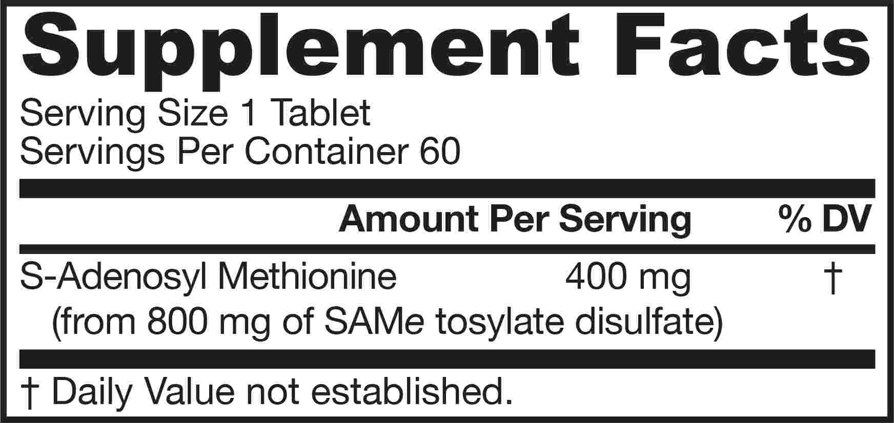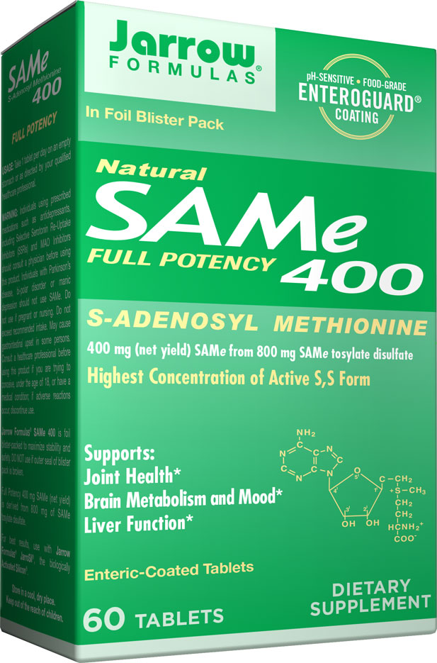 SAM-e wordt gevonden in alle levende organismen. SAM-e is een metaboliet van methionine (een essentieel aminozuur). SAM-e is een chiraal molecuul wat wil zeggen dat er meerdere varianten bestaan van SAM-e. Deze twee varianten zijn: (S,S) SAM-e en (R,S) SAM-e. De farmacologisch actieve vorm is die met de (S,S) variant, de ander is farmacologisch niet werkzaam. Jarrow Formulas' SAM-e is een product van microbiologische fermentatie, waar bij het productieproces geen gebruik is gemaakt van oplosmiddelen welke de farmacologisch werkzame concentratie (S,S) verlagen. Jarrow Formulas' SAM-e bevat de hoogst werkzame concentratie van 68 – 80% (S,S) SAM-e.