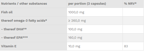 - hoog aandeel omega-3 vetzuren (260 mg per dagdosering)
