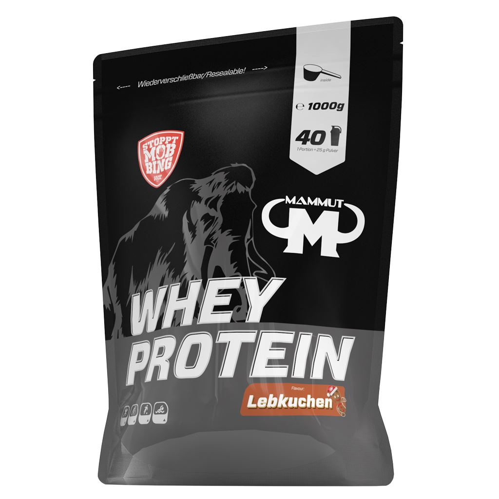 Mammut Nutrition Whey Protein 1kg is een hoogwaardig wei-eiwit in een praktische hersluitbare stazak met gemiddeld 27 gram eiwit per portie, ideaal om een heerlijke shake mee te bereiden, die geschikt is als een snel tussendoortje om snel het aandeel van aminozuren in de bloedbaan te brengen.