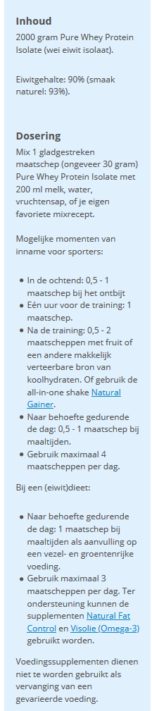 Whey Protein Isolate is rijk aan essentiële aminozuren, waardoor het net als ei-eiwit behoort tot een eiwitbron met de allerhoogste voedingswaarde.