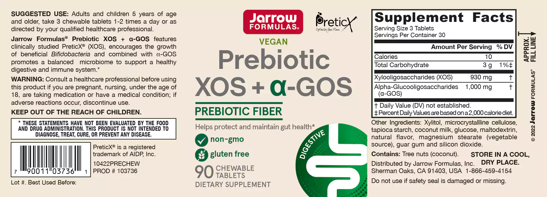 XOS+GOS Prebiotics 90 kauwtabletten - xylo- en galacto-oligosaccharides, bevordert groei goedaardige darmflora | niet meer leverbaar