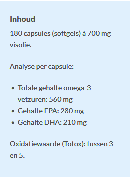 - High concentration of omega-3 fatty acids: 560 mg Omega-3 fatty acids per capsule, including 280 mg EPA and 210 mg DHA.