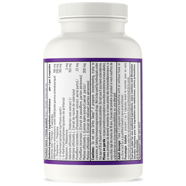 Ortho-Sleep contains a carefully formulated blend of nutrients and compounds that have been shown to be effective in combating insomnia and promoting healthy, restful sleep. These include neurotransmitters like GABA and melatonin, as well as 5-HTP, a serotonin precursor. The formula further includes the amino acid L-theanine as well as valerian root, passionflower extract, and lemon balm, all of which possess relaxing properties, and work to increase the activity of GABA in the brain.