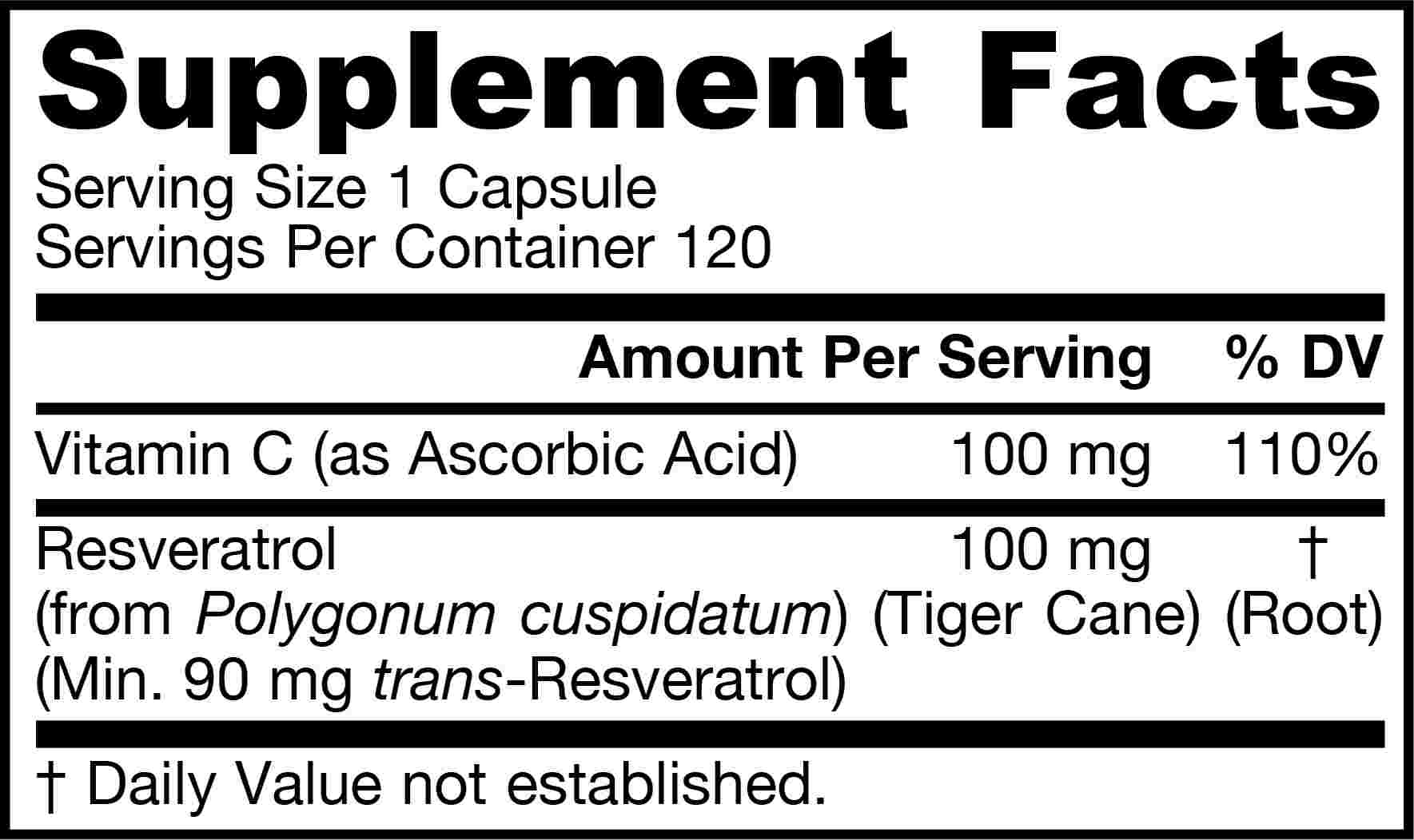Resveratrol 100 has an Oxygen Radical Absorbance Capacity (ORAC value) of over 3000 per capsule. As an antioxidant, resveratrol may protect cardiovascular function by inhibiting LDL oxidation, upregulating nitric oxide synthesis, and protecting the integrity of capillaries. Resveratrol has also been studied for its ability to activate Phase 2 detoxification enzymes and to maintain healthy cell replication.