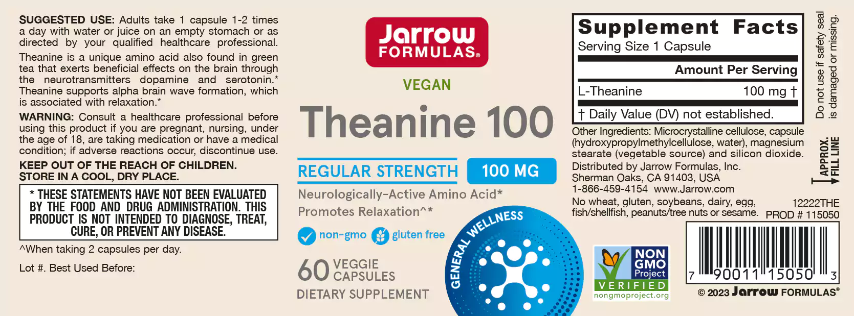 Theanine 100mg 60 capsules for relaxation and enhanced learning ability | Jarrow Formulas